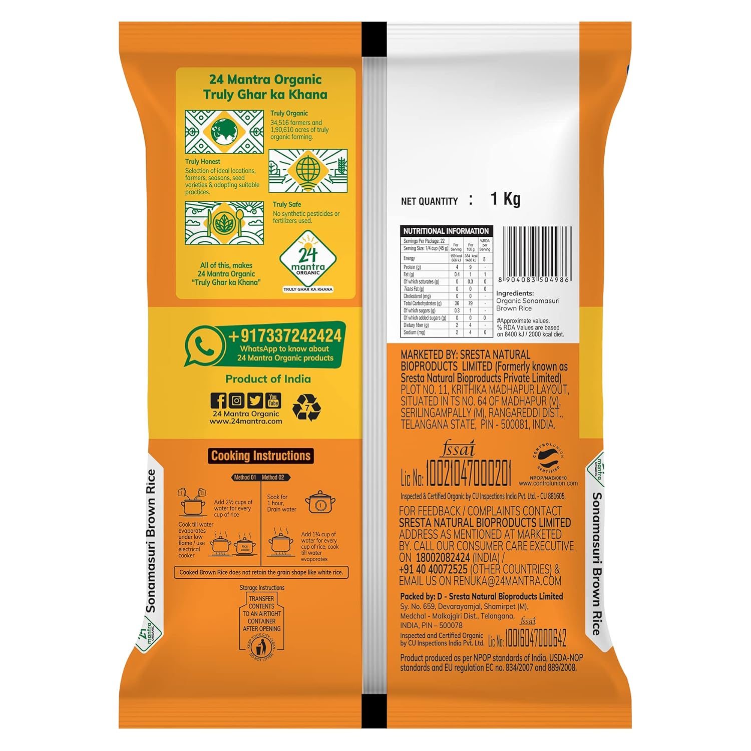 24 Mantra Organic Sonamasuri Unpolished Rice Brown/Brown Chawal – 5 Kg | Pack of 1 | 100% Organic | Chemical Free & Pesticides Free