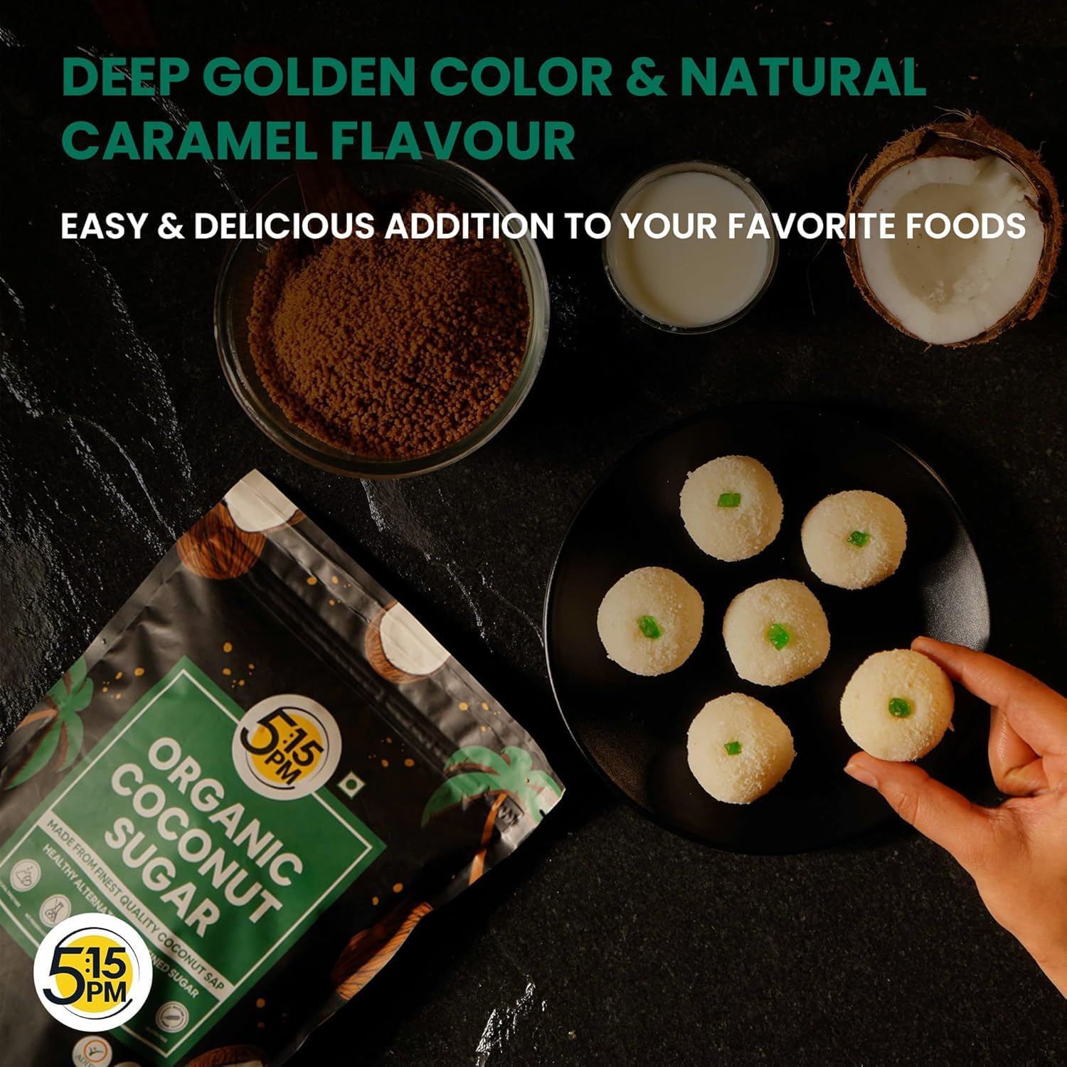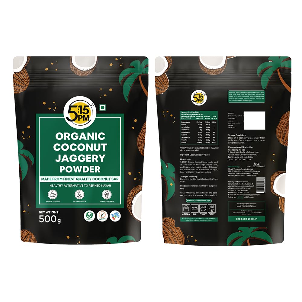 ✅ 𝐕𝐄𝐑𝐒𝐀𝐓𝐈𝐋𝐄 𝐔𝐒𝐄𝐒 𝐈𝐍 𝐁𝐀𝐊𝐈𝐍𝐆 & 𝐂𝐎𝐎𝐊𝐈𝐍𝐆: 5: 15PM Coconut Sugar is the perfect natural sweetener for all your cooking and baking needs. Cookies, cakes, muffins, brownies, pancakes, and many other foods can be sweetened with our Coconut Powder Sugar for a healthier alternative to granulated sugar. Unlike brown sugar, our 5:15 pm coconut sugar blends seamlessly into chai and pairs well with sweet delicacies like brownies. It can also be used as icing sugar.