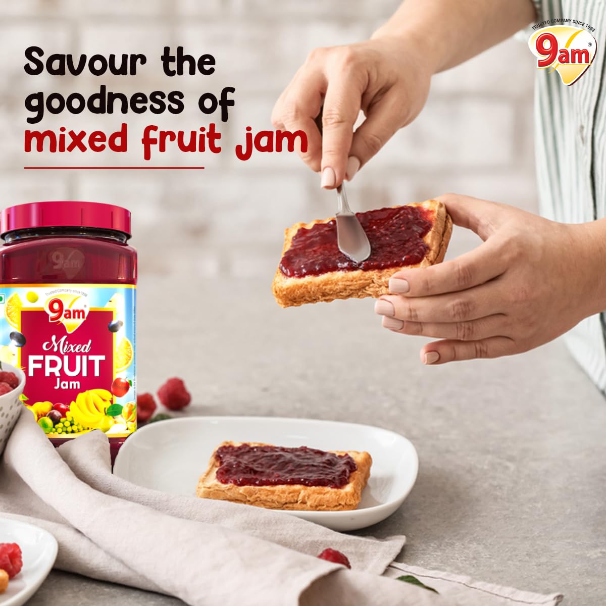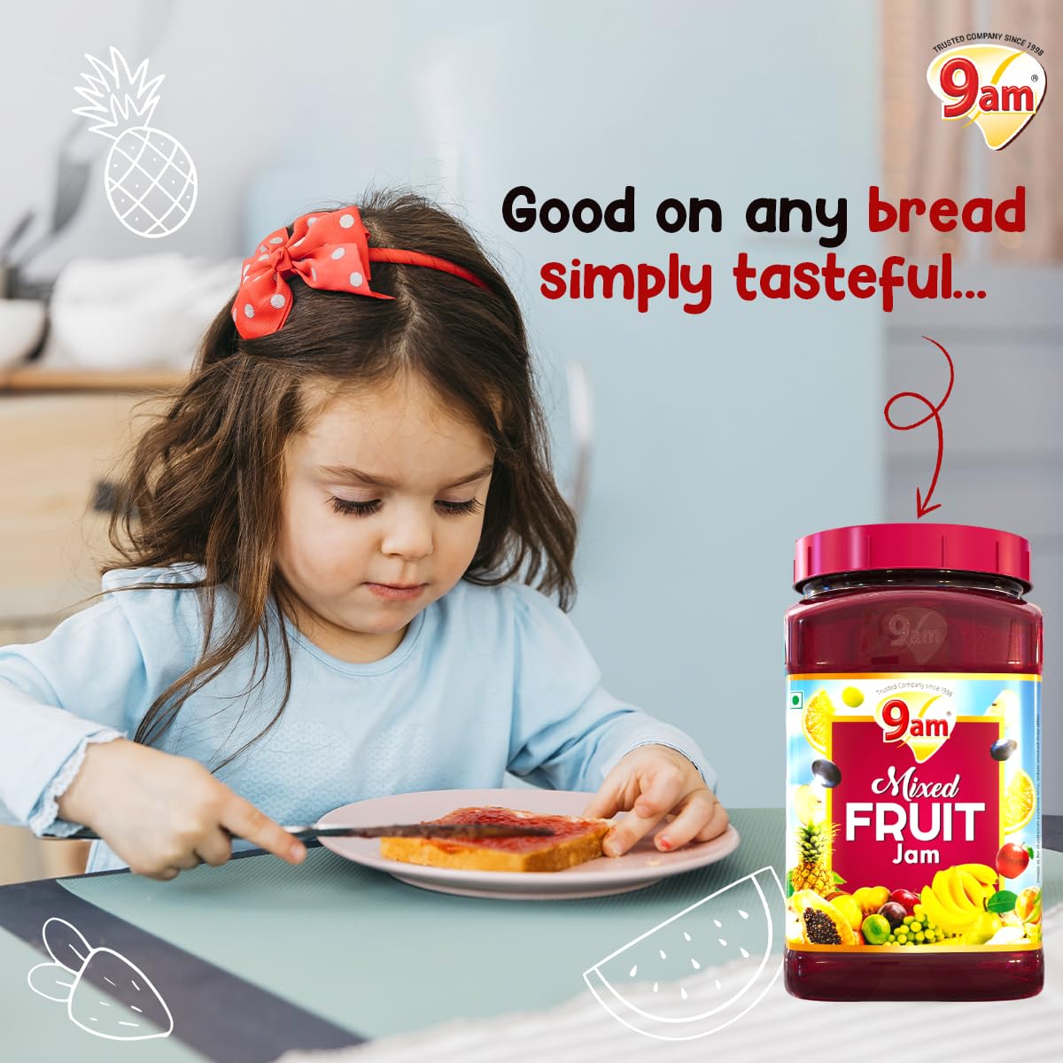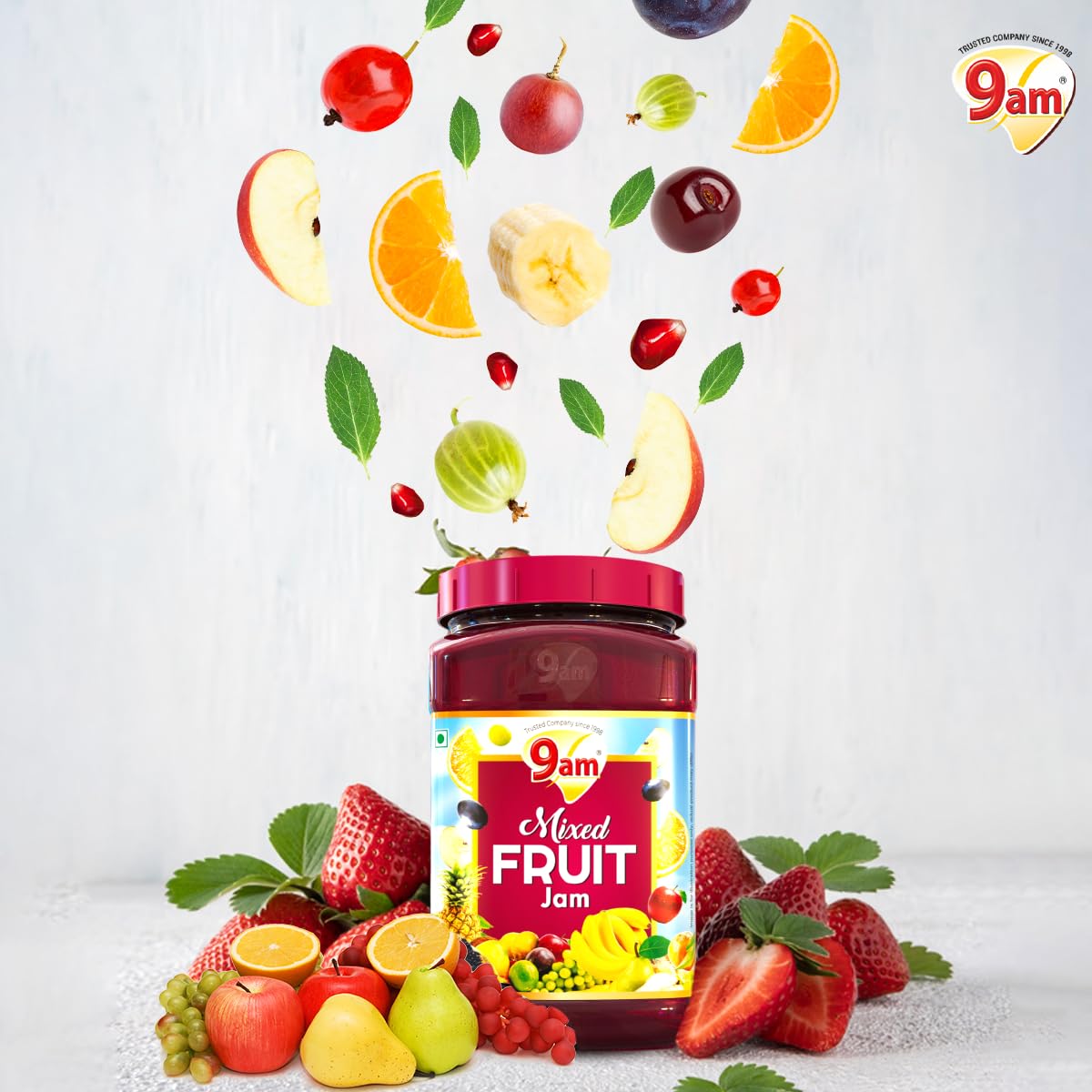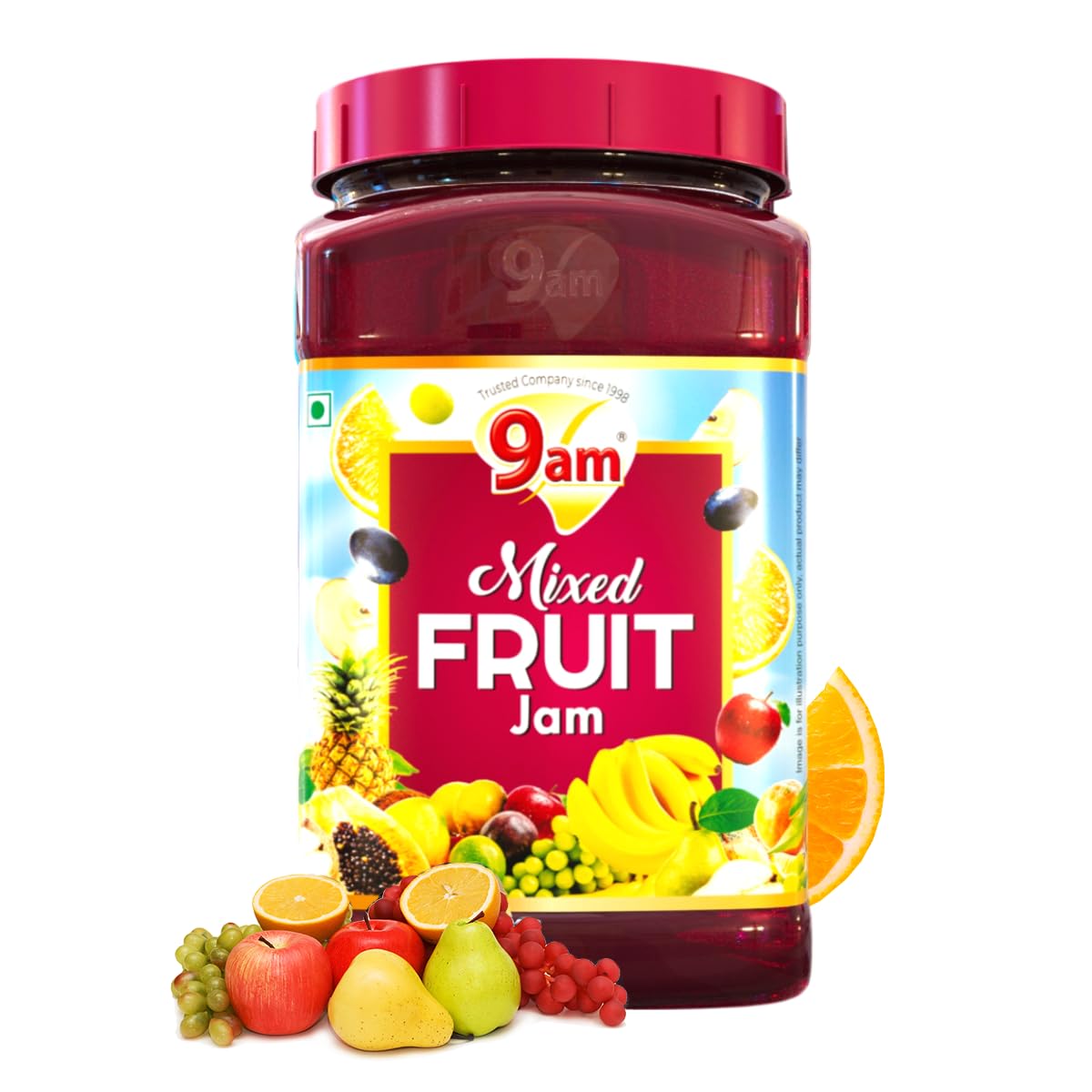 9AM Mixed Fruit Jam 1kg, Sweet and Delicious Fruit Spread, Rich in Taste, Ideal for Bread, Toast, Roti, Paratha, Perfect for Kids & Family, No Artificial Flavours, Vegetarian Jam Spread