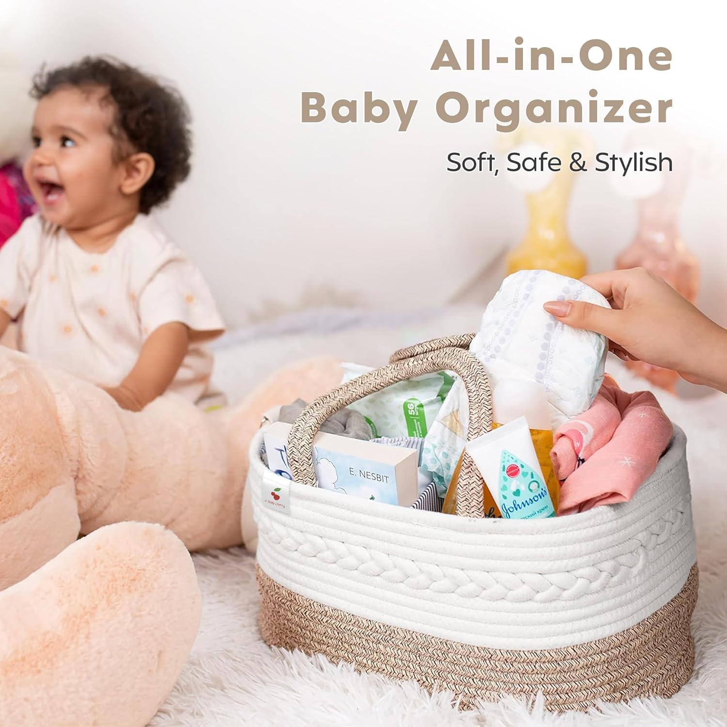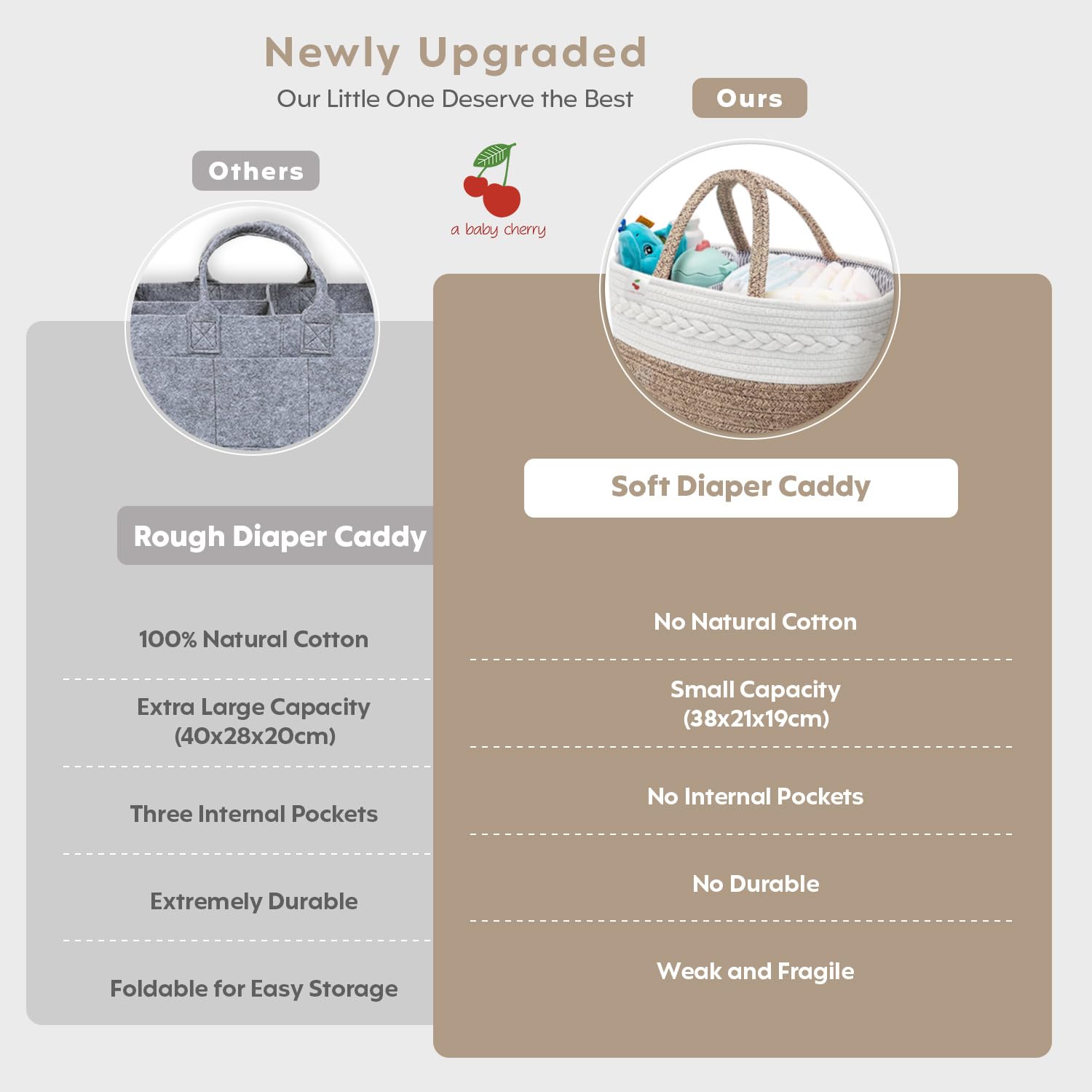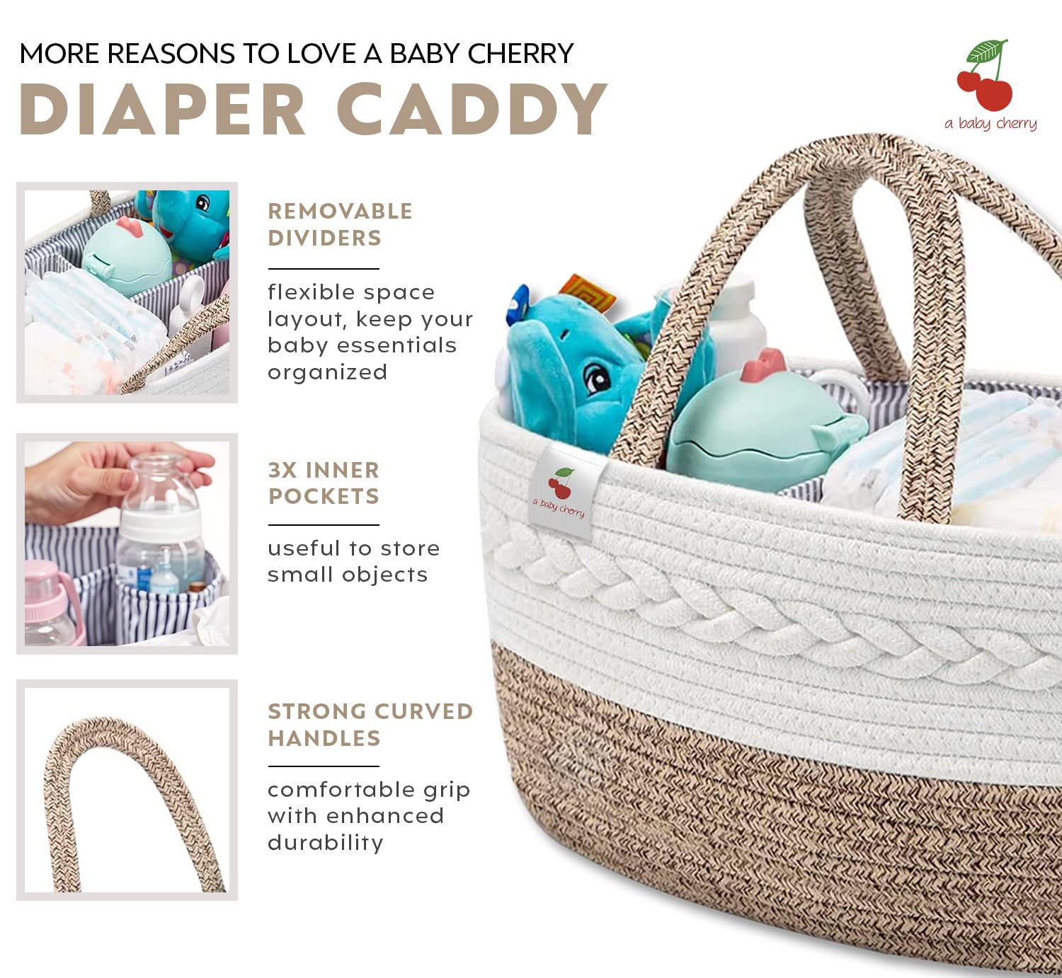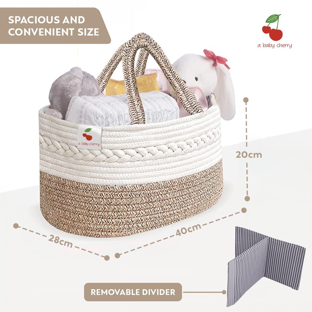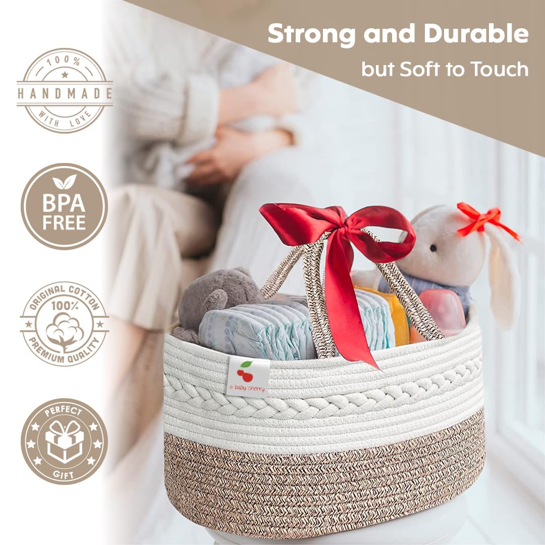 ✔️😀 ESSENTIAL STORAGE BASKET FOR NEWBORN PRODUCTS – A Baby Cherry Diaper Caddy/ diapers bag/caddy bag for baby is versatile enough for all that baby stuff: baby toys, diapers, baby clothes, baby wipes, bibs, onesies, baby toys, cloth diapers, changing pads, medicine, burp cloths, and other baby essentials! baby diaper bag/diaper bag for new born baby has Large enough fordiapers and most wipes dispensers.