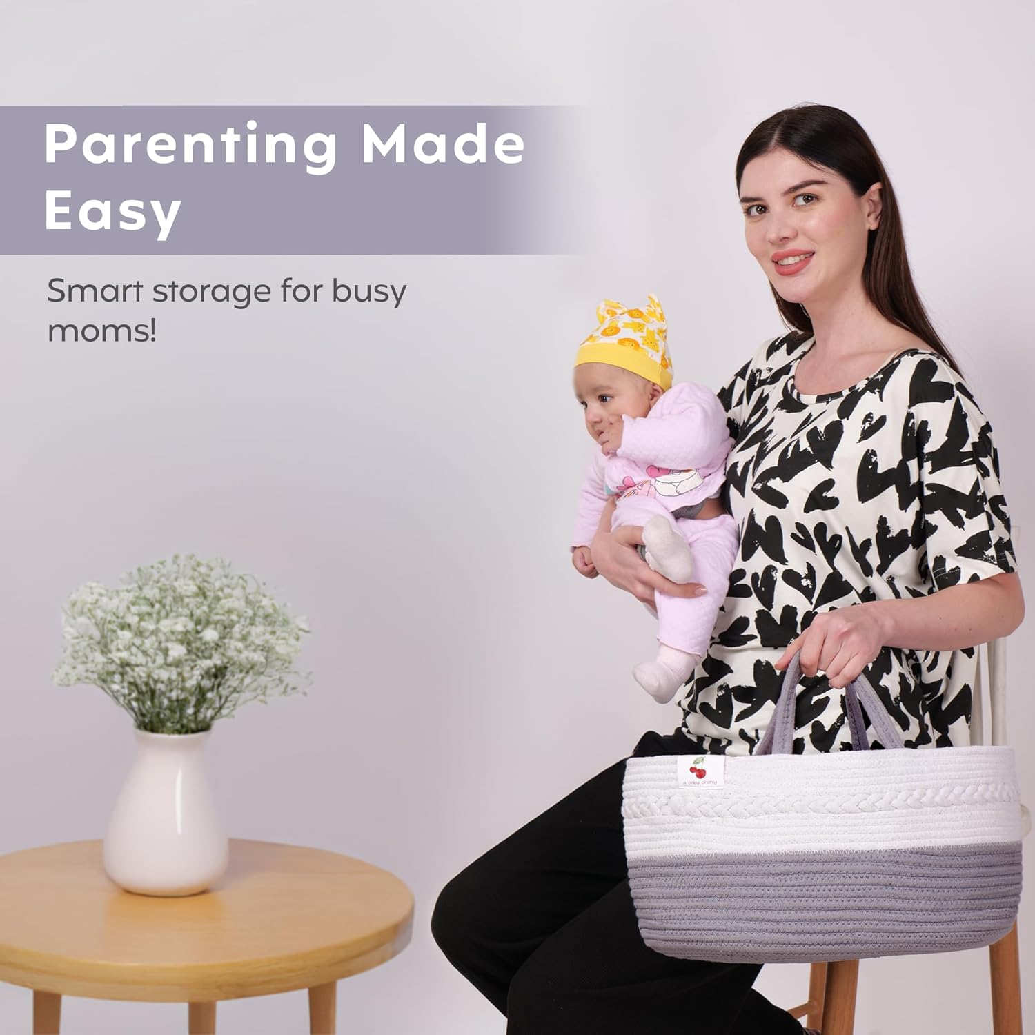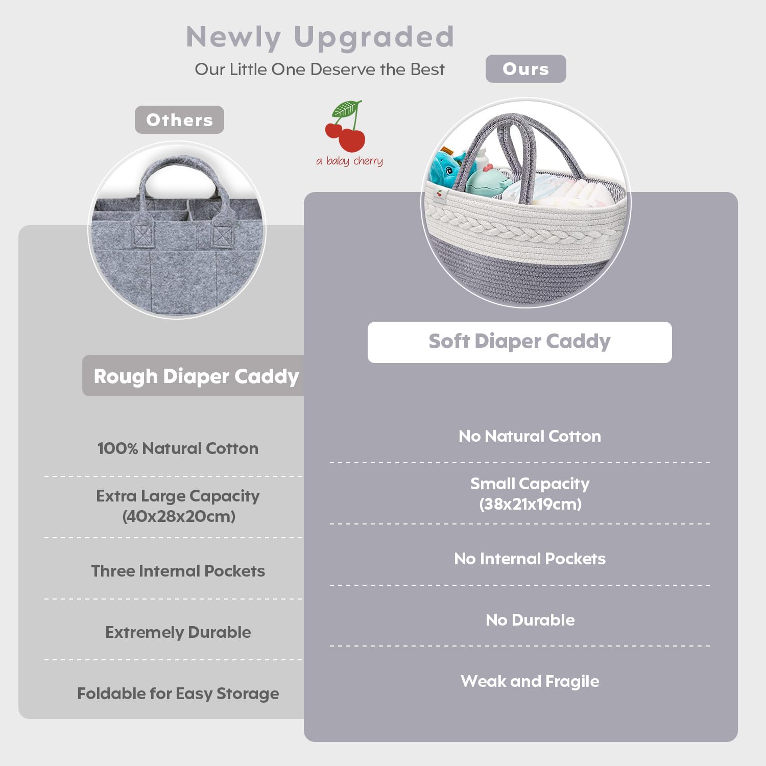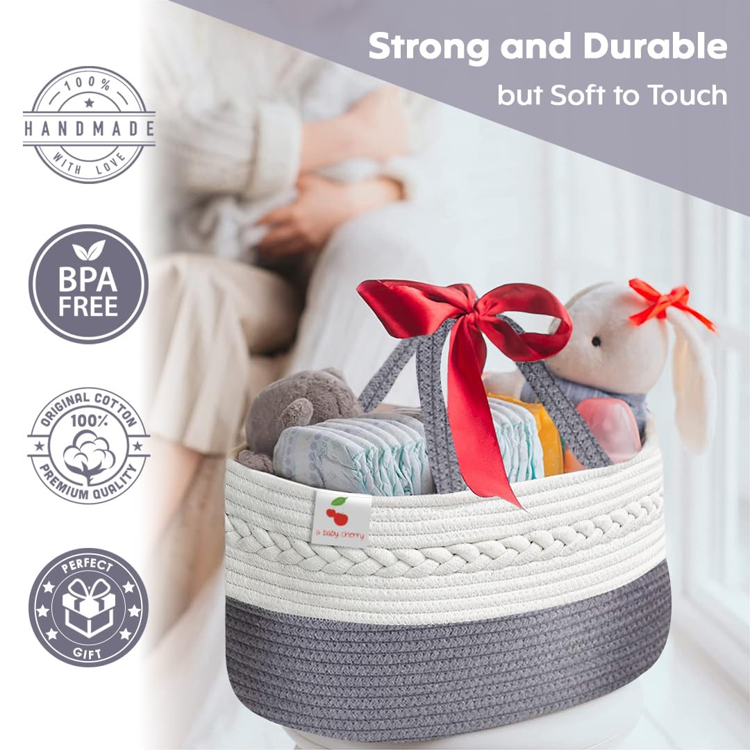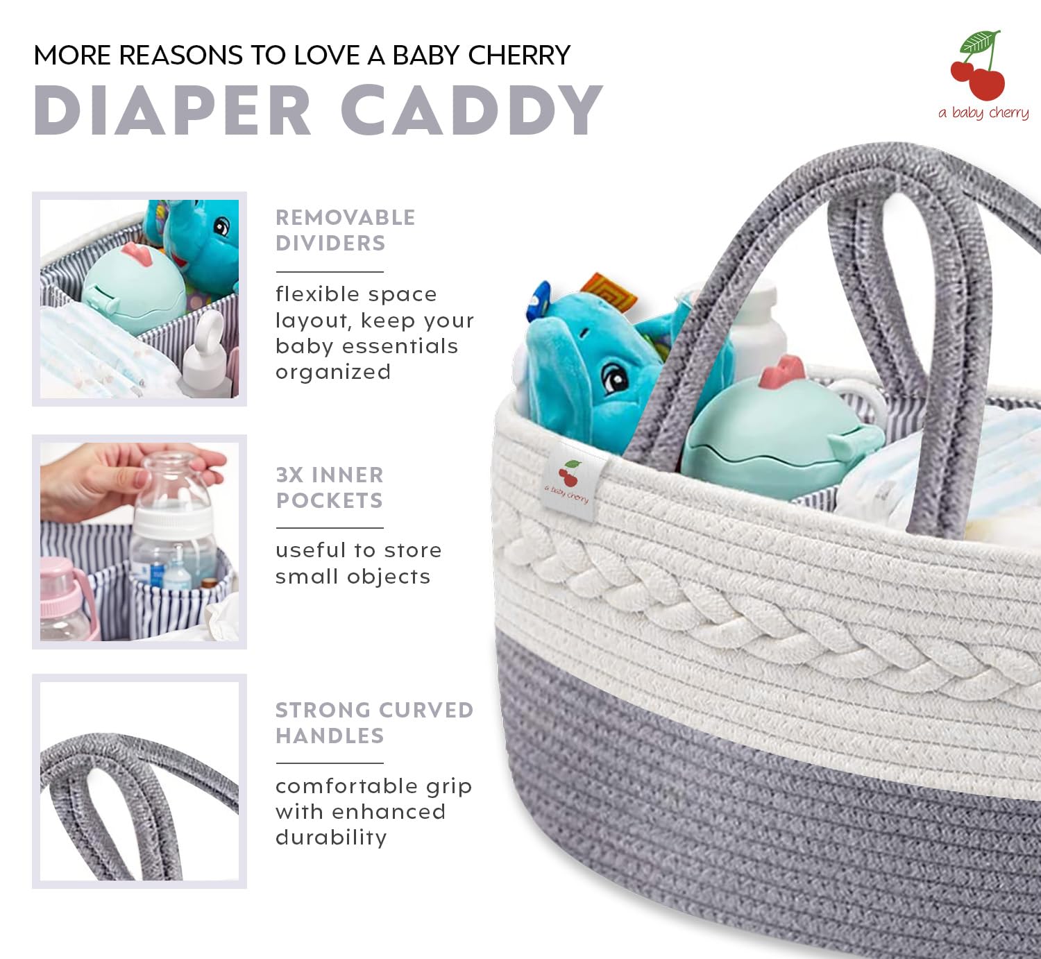 a baby cherry – Diaper Caddy | Baby Bags For Newborn | Diaper Caddy Bag Organizer Large Capacity (40 * 28 * 20CM) | Nursery Storage Bin And Car Organizer For Diapers And Baby Wipes (Grey, Cotton)