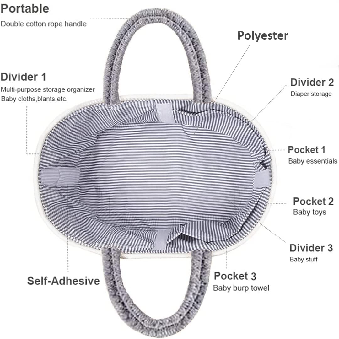 ✔️👶 STYLISH BABY ROOM DÉCOR ITEM – Our Baby Diaper Caddy organizer/ baby organizer storage measures 40 x 28 x 20 cm and offers ample space and compartments for easy access to all baby essentials. The versatile caddy bag/ new born baby diaper / new born baby bag / baby things carry bags for mothers has 3 pockets and 3 compartments.