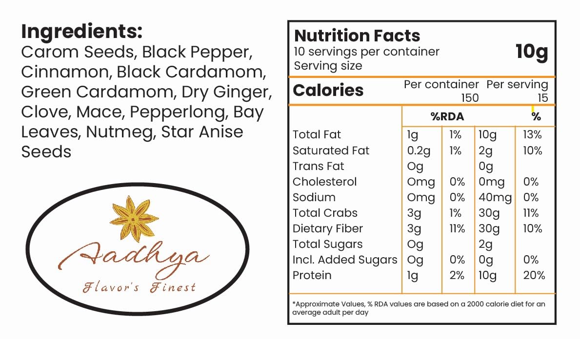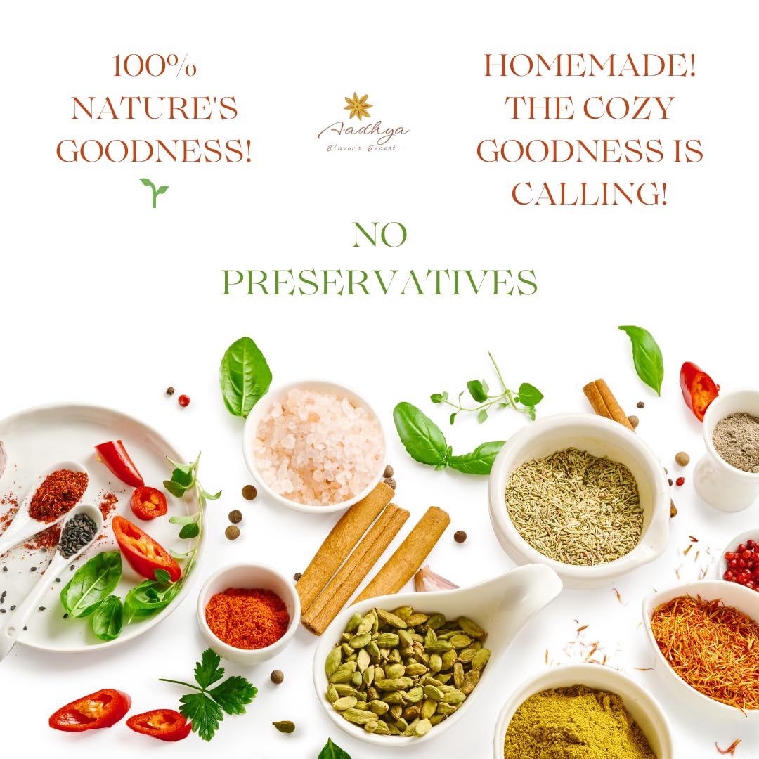 Health Benefits: Contains spices rich in antioxidants and anti-inflammatory compounds. Supports digestion, boosts immunity, and provides warming properties as per Ayurveda.