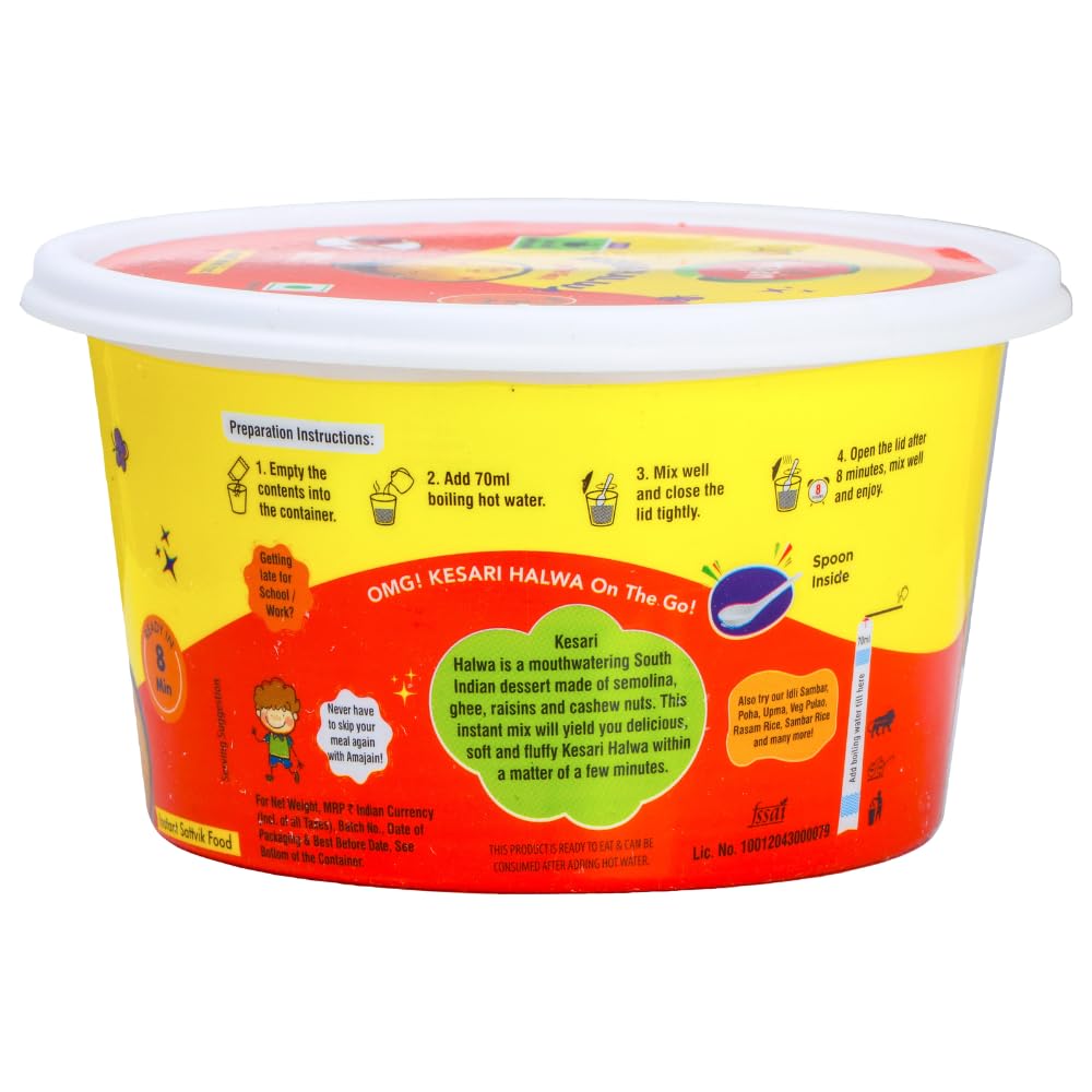 INSTANT PREPARATION: Simply add boiling water and wait for 8 minutes. Alternatively, add water and microwave for 2 minutes. Your Sattvik meal is ready to be served hot! Ideal when you’re running short on time and cooking is certainly not an option. Amajain to the rescue!