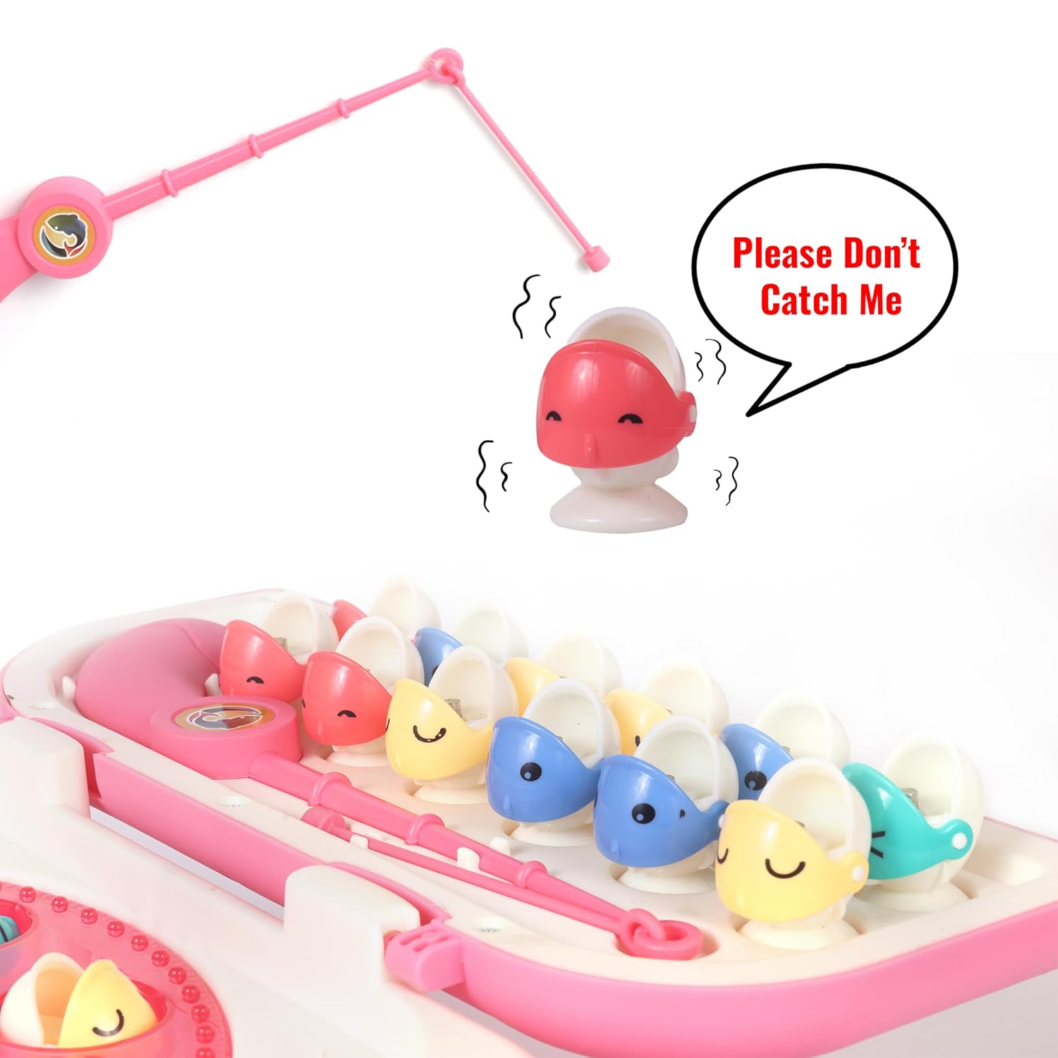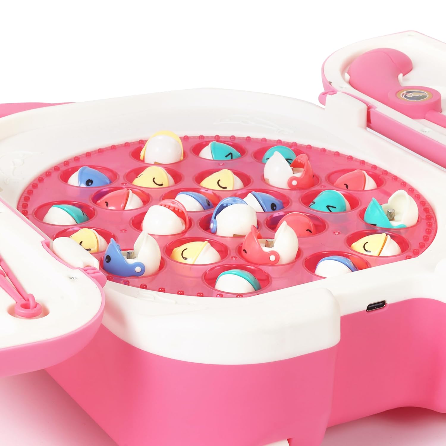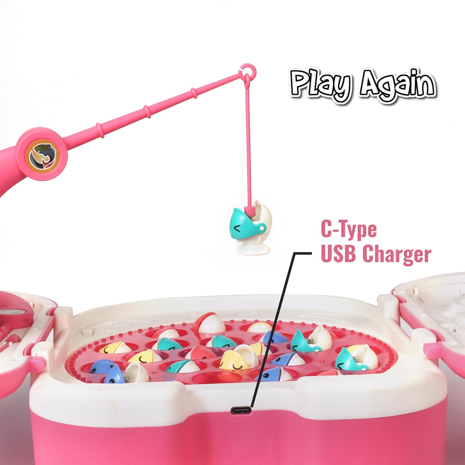 Amazon Brand – Jam & Honey Magnetic Fishing Game for Kids – 2 Player Toy with 24 Magnetic Fishes, Lights & Music, Rechargeable with Type-C Charging, Trolley Design | Magnetic Fishing Game