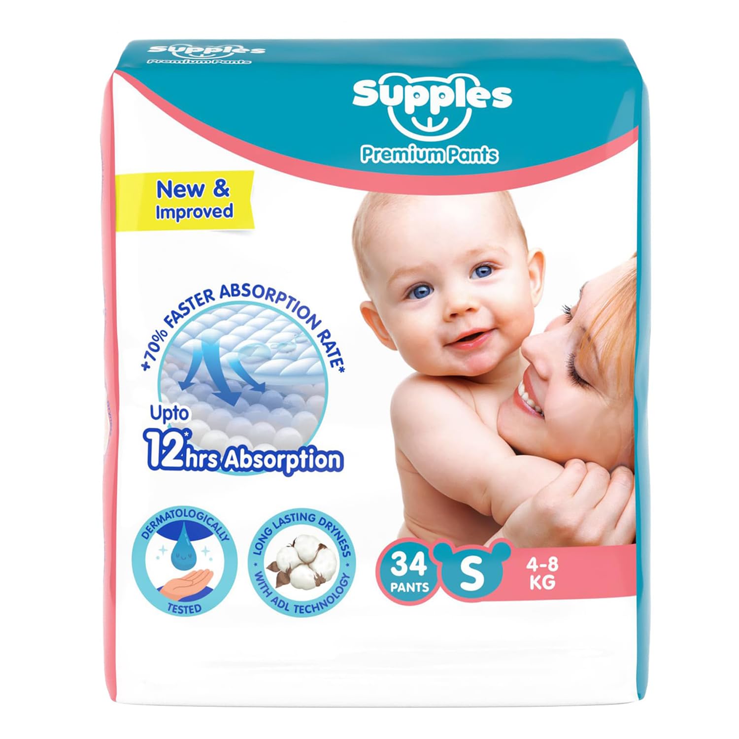 Gentle on Skin: Crafted from cushiony cotton soft fabric and non-woven, breathable materials, Supples Diapers are free from phthalates, ensuring gentle care for delicate skin.