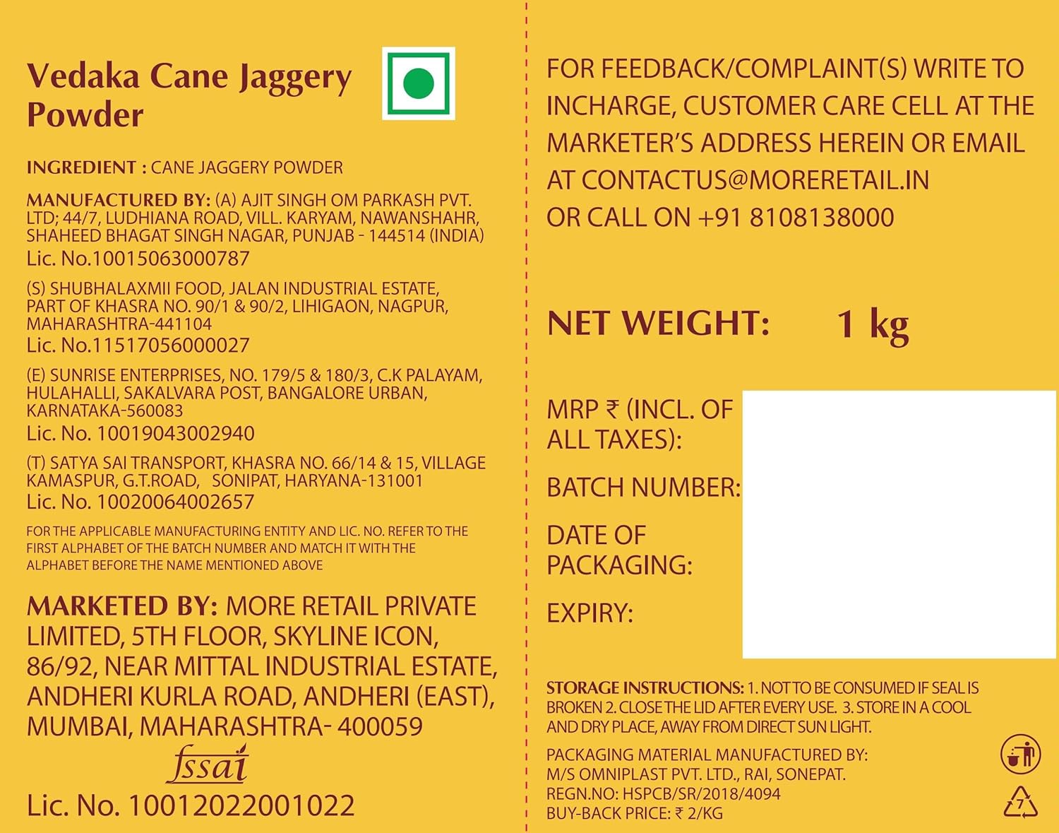 Vedaka Premium-Quality Jaggery Powder | Zero Preservatives | No Added Sugar | Natural Sweetener | 1kg Jar