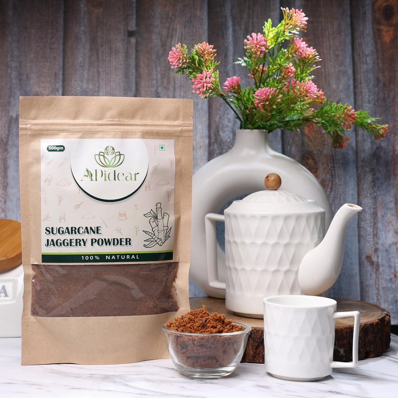 Apidear Sugarcane Jaggery Powder is a 100% natural and organic sweetener made from fresh sugarcane juice, processed without any chemicals, preservatives, or added sugar. Sourced from premium-quality sugarcane farms, our jaggery powder (gur) is unrefined, unadulterated, and packed with essential minerals like iron, calcium, and antioxidants. With its rich aroma, earthy flavor, and soft texture, this jaggery powder makes a perfect substitute for white sugar in tea, coffee, sweets, and everyday cooking. Not only does it enhance taste, but it also supports digestion and acts as a natural immunity booster. Each pack contains 250 grams of pure jaggery powder, and this listing includes a Pack of 2 for your daily health and kitchen needs. Whether you’re following a natural lifestyle or looking for a healthier sweetener for your family, Apidear is the ideal choice for clean and conscious living.