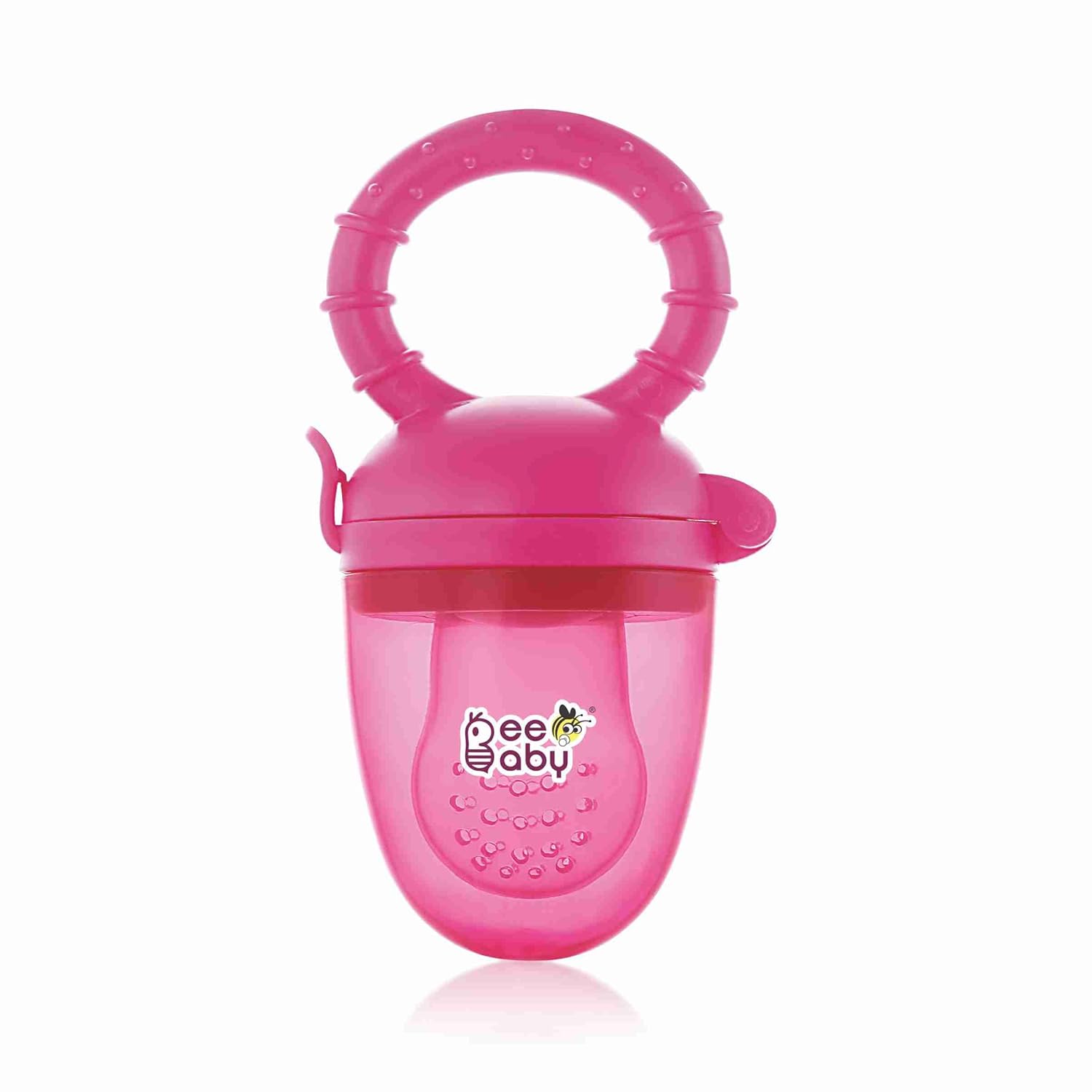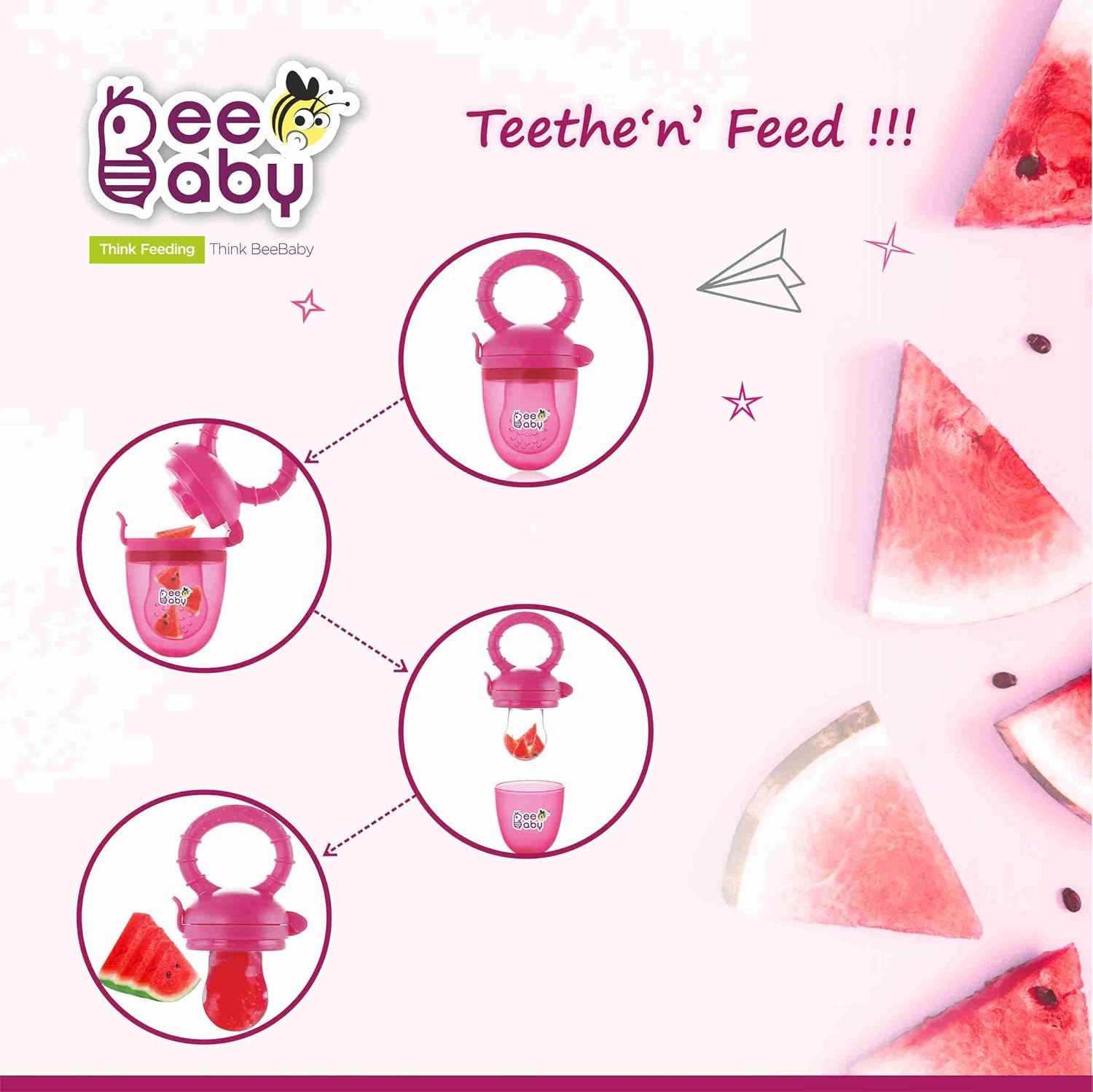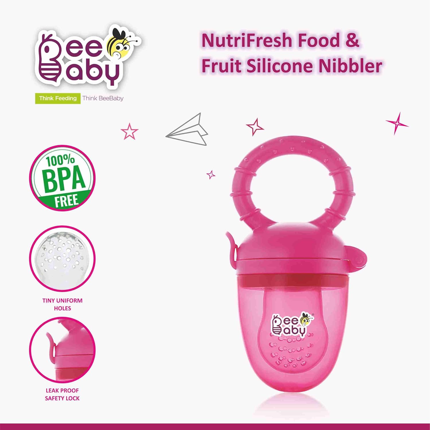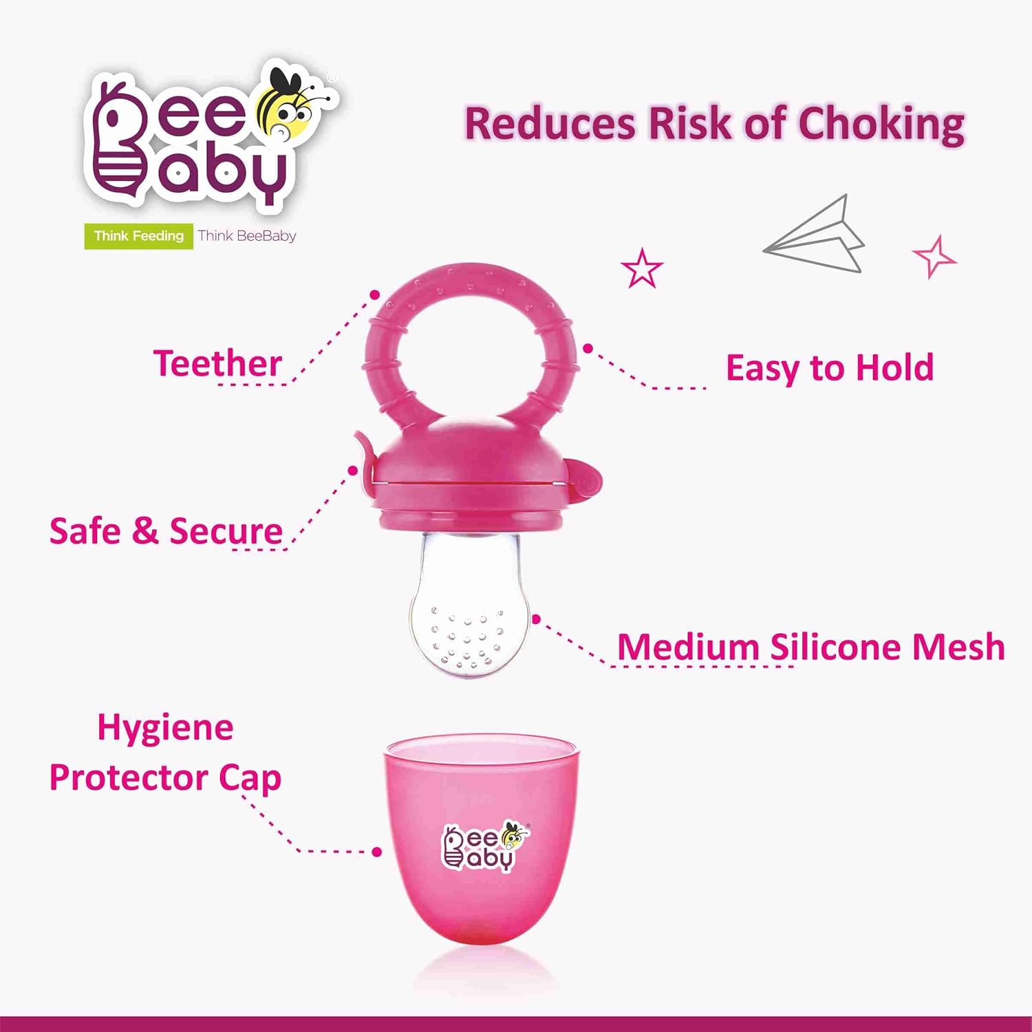 BeeBaby Soft Silicone Nibbler with Extra Mesh for Babies, Baby Fruit & Food Feeder, Anti Choking Fruit Pacifier, Teether for Infant, 100% BPA Free, 3 Months+ (Fruttino – Pink)