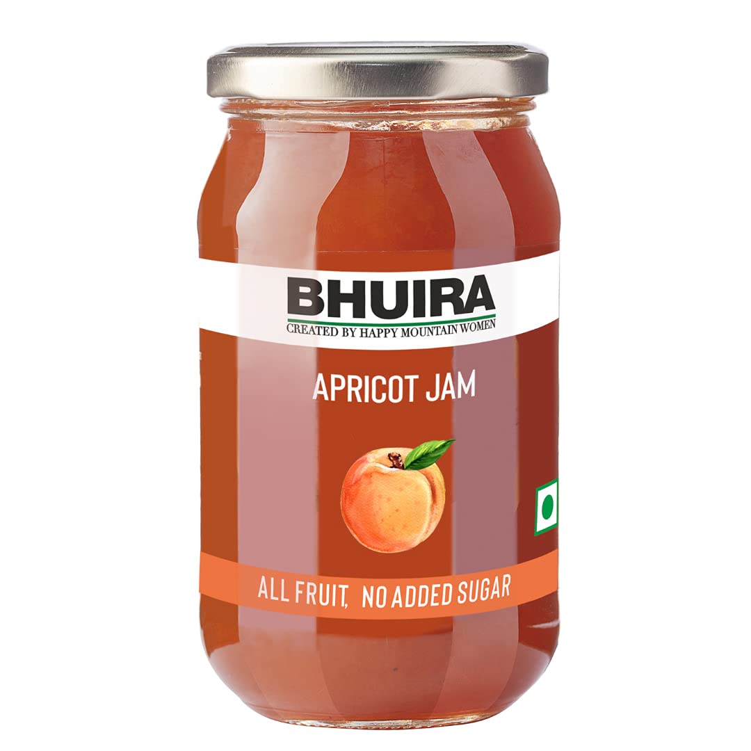 Bhuira Apricot Jam – 240g | All Natural No Added Sugar, Preservatives, Artificial Colors | Handmade Himachal Vegan Spread | Breakfast Dessert Jam | Healthy Snack | Guilt-Free | Sweet Tart