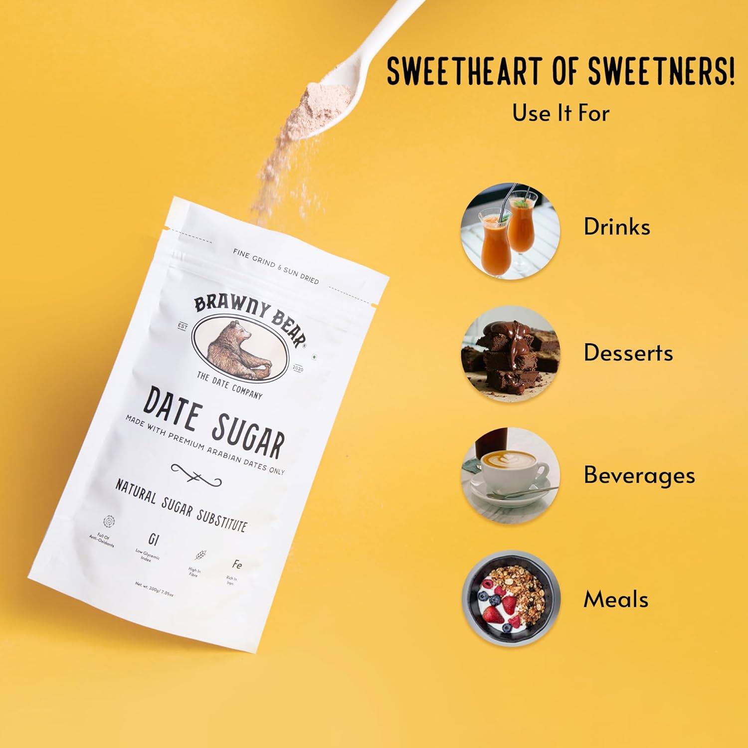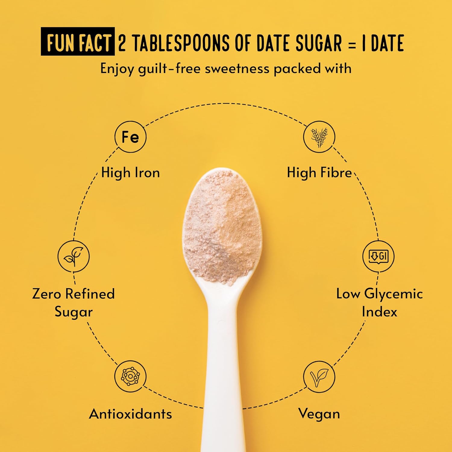 DIET FRIENDLY – It is an excellent addition to any kind of diet. This sugar alternative is a great 1:1 replacement for jaggery, white refined sugar, brown sugar, and other sweeteners. Highly recommended for health-conscious consumers; Flavour: Date Sugar; Shelf Life: 365 Days; Package Weight: 200g
