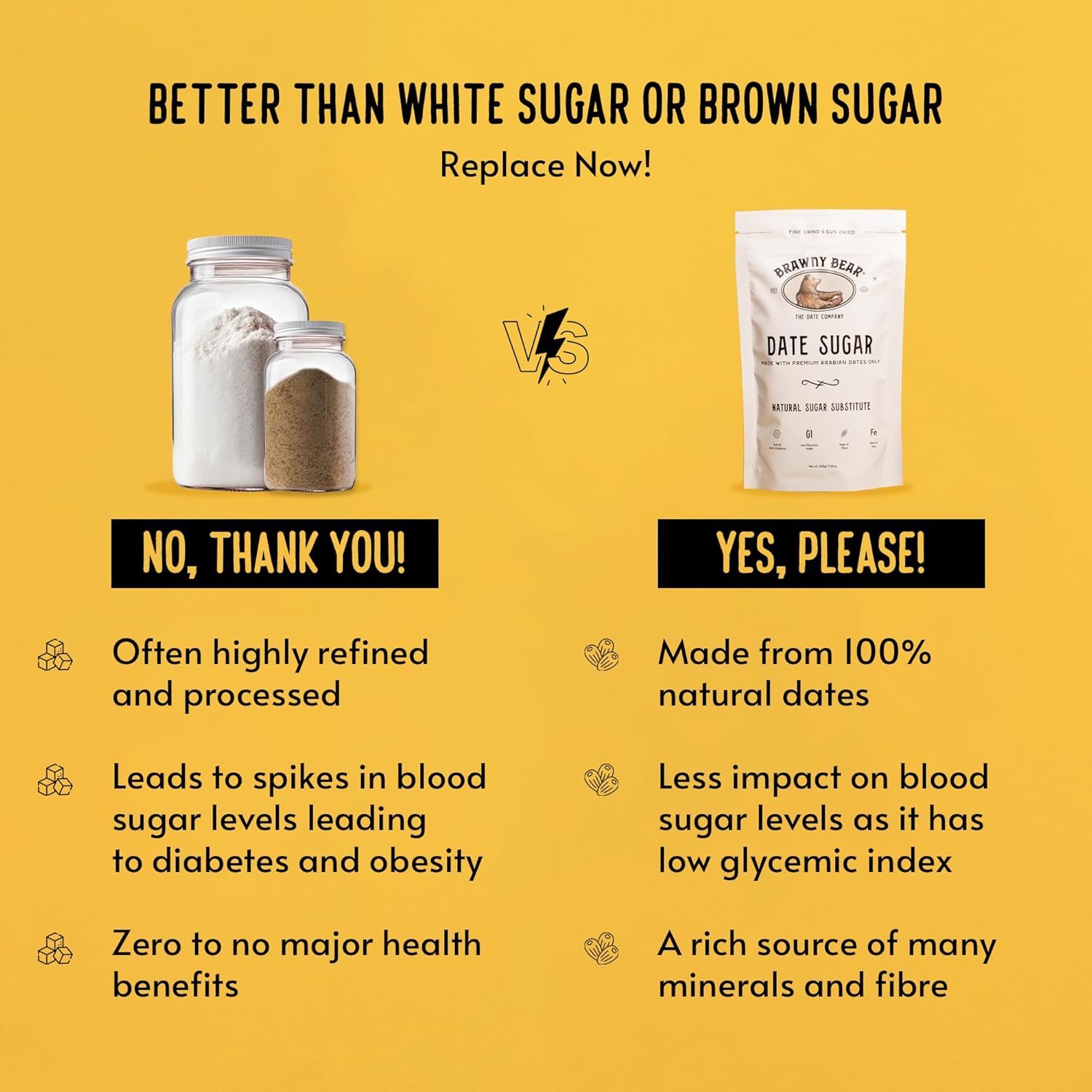 EXCELLENT FOR BAKING & DESSERTS – Craving sugary snacks But don’t want the added sugar in your desserts then try our Date Sugar; it adds natural sweetness to baked goods like cookies, cakes, smoothies and the other good stuff. Note: Replace white/ brown sugar 1:1 in recipes and reduce flour by 25%